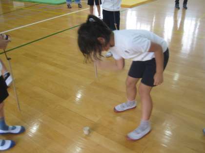 まず,日本のこまを代表の児童が回しました。