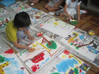 1年生は,今,お話の絵の制作に取り組んでいます。