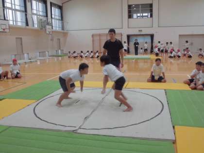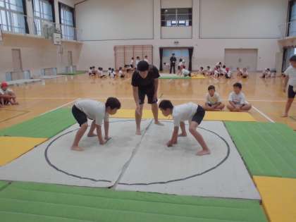 その後は、これまで対戦をしたことのない隣のクラスの友達と、すもうを楽しみました。