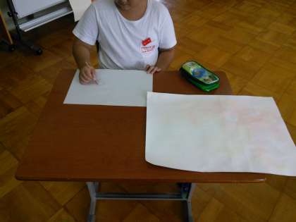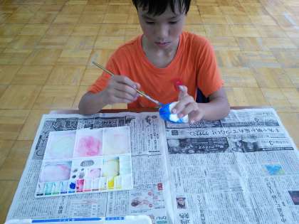 図工「大好きな物語」に取り組んでいます。今回は,お話の中に出てくる場面を実際に体験してみました。『ぼく』は学校の帰り道に「あっ!みーつけたっ!!」と動物に見える石を見つけます。その石に色を塗って動物に見立てて,動物園をつくるのですが…「石に色を塗って動物にするってどういうことなんだろう?」と考えて,実際にやってみました。「これペンギンに見えるわ。」「キリンかな?」といいながら,絵の具で色を塗り,動物を仕上げていきました。「楽しかった。」「『ぼく』も楽しかったと思う。」などの声が聞こえてきました。