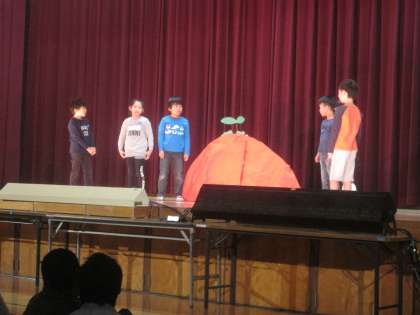 1年生の「はじめの言葉」に続いて,さっそく1年生の劇が始まりました。
