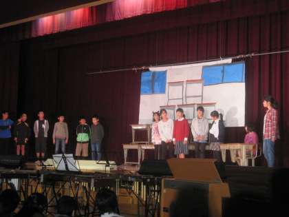 5年生は劇で,「友情のモニュメント」です。