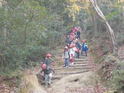 「登るときより,下りるときの方が大変そう。」と言っていた子どもたち。足元が少しすべりやすかったのですが,気をつけながら歩くことができました。