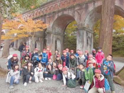 水路閣では、紅葉シーズンということもあり、クラス写真を「パシャリ!」