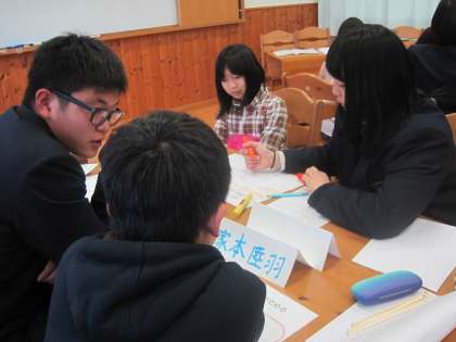 良い点をそれぞれのグループで用紙に書き込み,