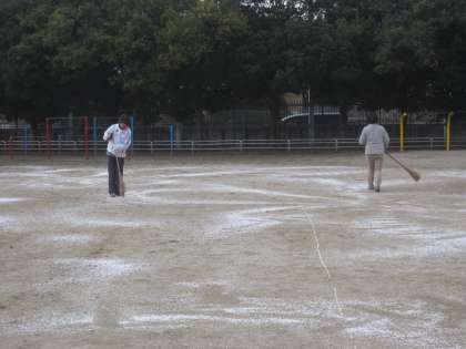 運動場のぬかるみも少しましになると思います。