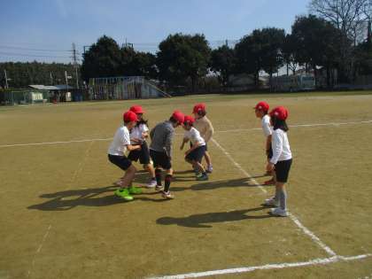 子どもたちは,相手ゴールに向かってパスやシュートをして