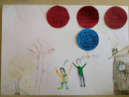 今年度最後の,3月のカレンダープレゼントが終わりました。1年間,心をこめて作ったカレンダーです。今回は担当児童の発案で,春をイメージした絵に,1人ずつメッセージを書いて,貼りつけました。