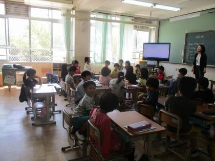 2組の担任が1組の外国語活動(英語)の授業を