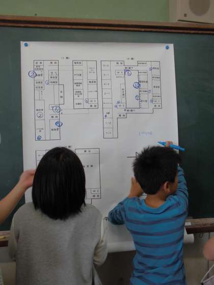 上里小学校にはどこに,どれくらいの数の蛇口があるのか調べに行きました!
