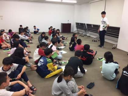 入浴のあとは,「家族の顔を思い出し,迷いに迷ったおみやげタイム」です。どんな品物を選んだのかな? 就寝前にはホールに集まって,一日のふりかえりをしました。集中して反省を書いていました。