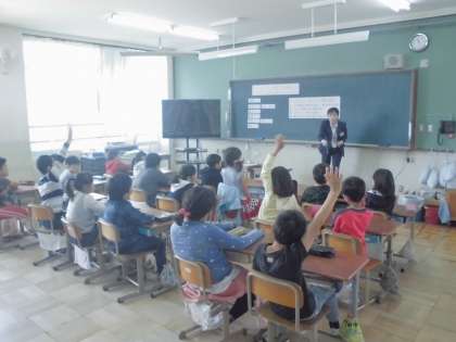 本日、西京警察署の方にお越しいただき、いじめや暴力をしてはいけないことや、社会のルールや決まりについてわかりやすく教えていただきました。子どもたちはとても関心があるようで身を乗り出して授業を聞いていました!