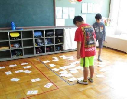 国語の授業で「カルタとり」をしました。初めは先生が言ったカルタを探して取ります。「絵」「ひらがな」「カタカナ」など,それぞれの子どもの力に合わせたカルタを用意して行いました。たくさんの絵や文字カルタの中から探すのは,なかなか難しいですが,耳でしっかり聞いて,目でしっかり見て探していました。これからも,ゲーム等も取り入れながら,楽しく文字への興味を広げていきたいと思っています。