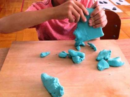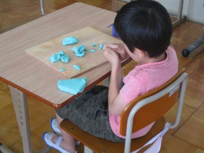 1年生の図工で「粘土遊び」をしました。油粘土をしっかりと力を込めてちぎっていきます。小さくちぎった粘土を丸めたり,細長く伸ばしたりと,手や指をしっかり使って活動していました。これからも粘土の感触を楽しみながら,楽しい活動にしていきたいと思います。