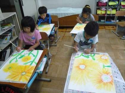 画用紙いっぱいのひまわりの花がみんなお気に入りのようです。