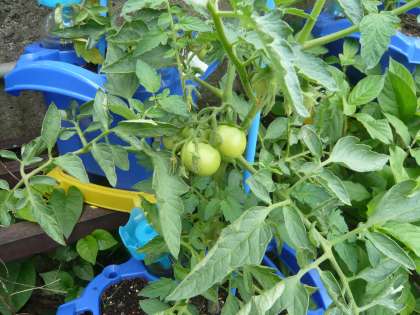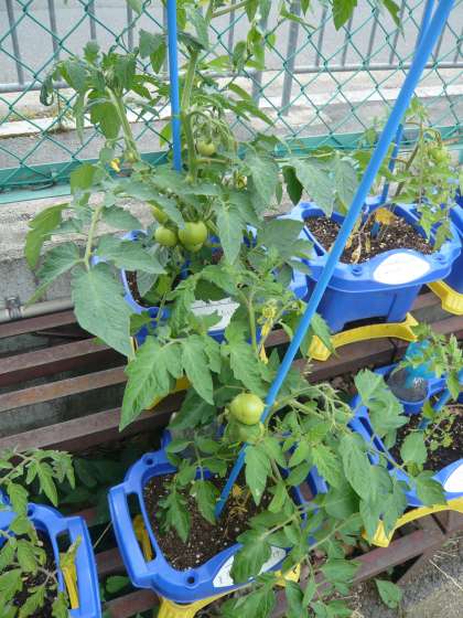 5月に植えたミニトマトに青い実がつきはじめています。