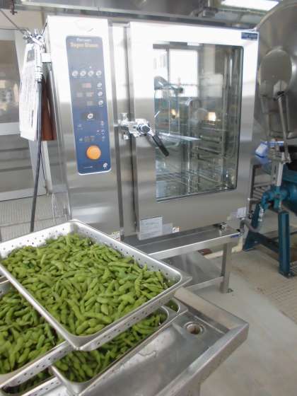 8月28日にまず,いつもはゆでていた枝豆をこの機械を使って蒸してみました。子ども達は,いつもより甘い味がすると,素材そのものの味を味わって食べていました。