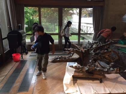 館内ウォークラリーの様子です。「館内」といっても相当広い建物なので,活動のし甲斐があります。グループのみんな何を探しているのかな?