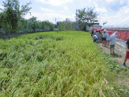 稲は,5月に植えた時よりもぐんと伸び,稲穂が実り始めています。
