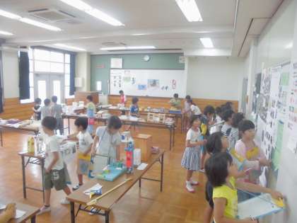 子どもたちは,興味津々な表情でいろんな学年の人たちの
