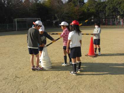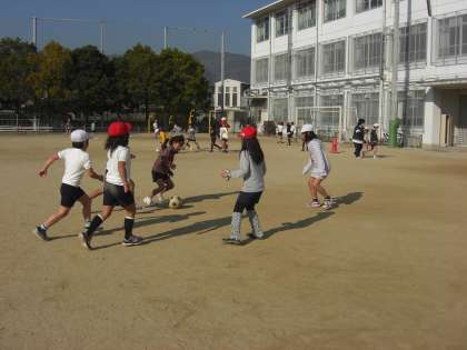 2年生は,寒さに負けず,体育は,外でボールけりを