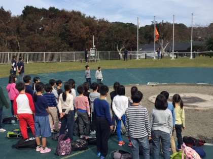 校歌に合わせて旗をポールにあげました。これからの活動をしっかりとがんばります。