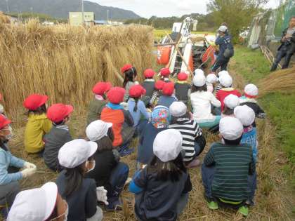 最後は、脱穀したお米がコンバインから出てくる瞬間に釘付けの子どもたちでした。