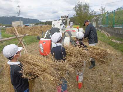 10月12日(金)に,地域の方々のご協力のもと,脱穀を行いました。