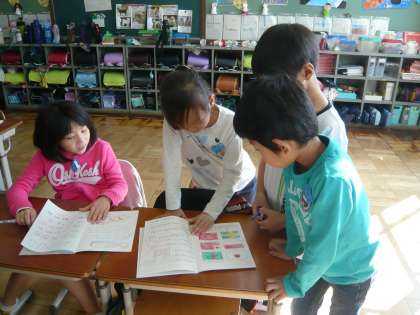 この日はクラスの友だちがどんな自主勉強をしているのか,ノートを見せてもらいに回っているところです。