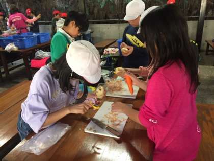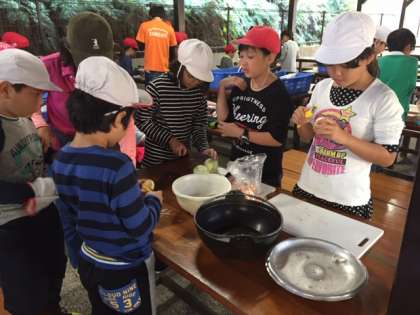 かまどに火をつけるのも,野菜を切るのもおまかせです。どのグループもおいしいカレーを作ることができ,完食しました。写真で見るだけでも本当においしそうなカレーです。なにやらお腹が空いてきました。
