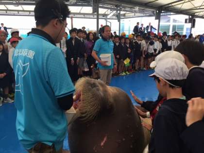 毎年大人気のセイウチショーです。その大きさと芸達者ぶりに笑いと拍手に包まれていました。