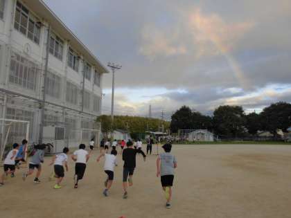 水曜日の練習中。子どもたちの頑張りを応援するかのように「虹」が。