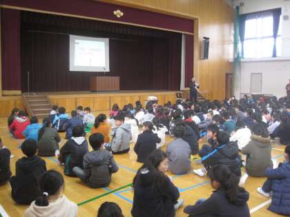 各クラスで考えた人権に関するクラス目標をふりかえる集会です。