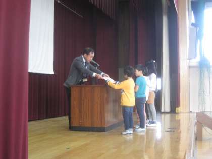 各学年1名を選び賞状を渡しました。