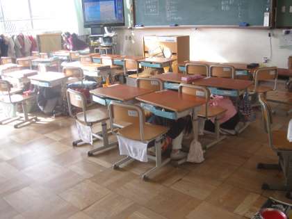 みんな机の下に身を隠し,安全を確保しました。