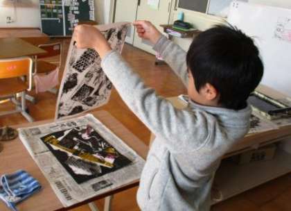 最後にインクを付けて刷ります。1年生は初めての経験。5年生は今までの経験を生かして行いました。すてきな作品になりそうです。お楽しみに。