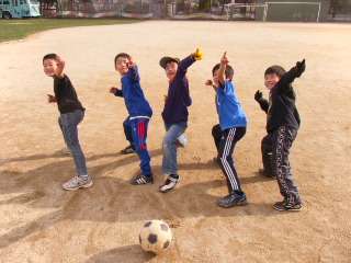 キャプテンになった子はキャプテンマークの画用紙で作った黄色い腕章を付け、シュートが決まったらパフォーマンスの決めポーズ!