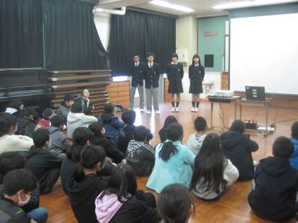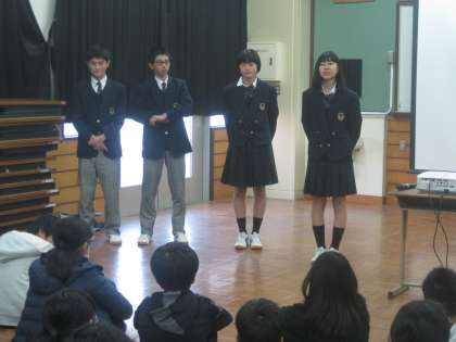 中学校入学前のプレゼンテーションで,本校に来てくれました。