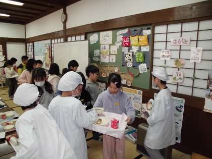 いろりの間で給食を食べたり,