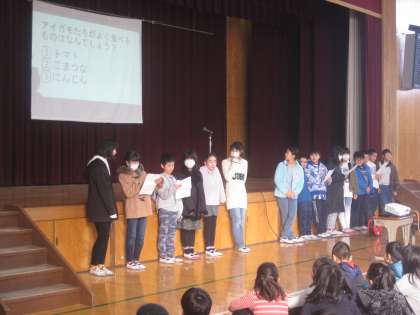 最後に,給食委員会から給食週間の時に,残菜が少なかったクラスに,