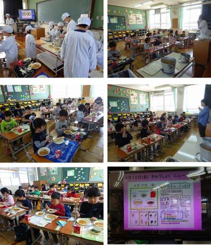 温かくておいしい給食。みんな楽しみにしています。