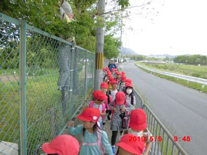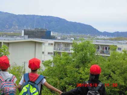 途中の高台からは,上里小学校が見え,子ども達は「見えた〜。」「あんなに小さく見える!!」と大喜びでした。
