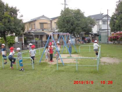 途中で休憩をした鳥見公園や勝山公園では,1・2年生の合同グループごとに分かれて遊んだり,お弁当を食べたりして過ごしました。