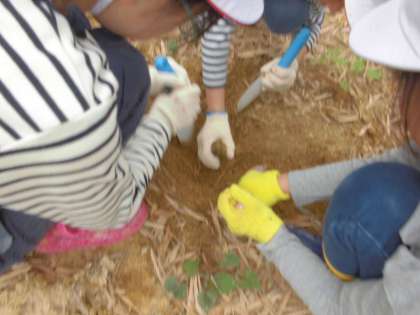 終わった後の感想では,「みんなで協力してほると大きいたけのこもほれて嬉しかった。」や「たけのこの根の部分をよくみると赤紫のものがついていました。」などありました。