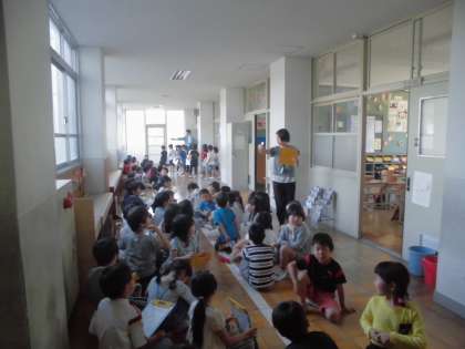 とたくさんの児童が話していました。