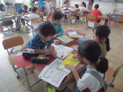 社会科「学校の周りの様子」の単元で,校区地図の作成に取り組んできました。大型連休中に,町内の校区の様子を書き込んだ地図をもとに,「分かりやすい地図にするためにはどうすればいいのかな?」,「地図にきまりはあるのかな?」など話し合いを重ねてきました。そしてようやくみんなが見やすく分かりやすい校区地図を作ることが出来ました!