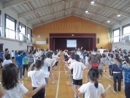 運動会に向けて全校ダンスの練習をしました。