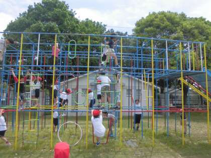 総合遊具で遊んだり,バレーボールを