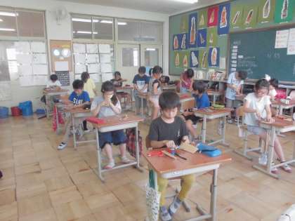 図工で,段ボールを使って便利なアイデアボックスを作ります。
