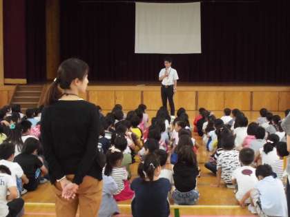 教職員から安全に関わることや雨の日の遊び方などの